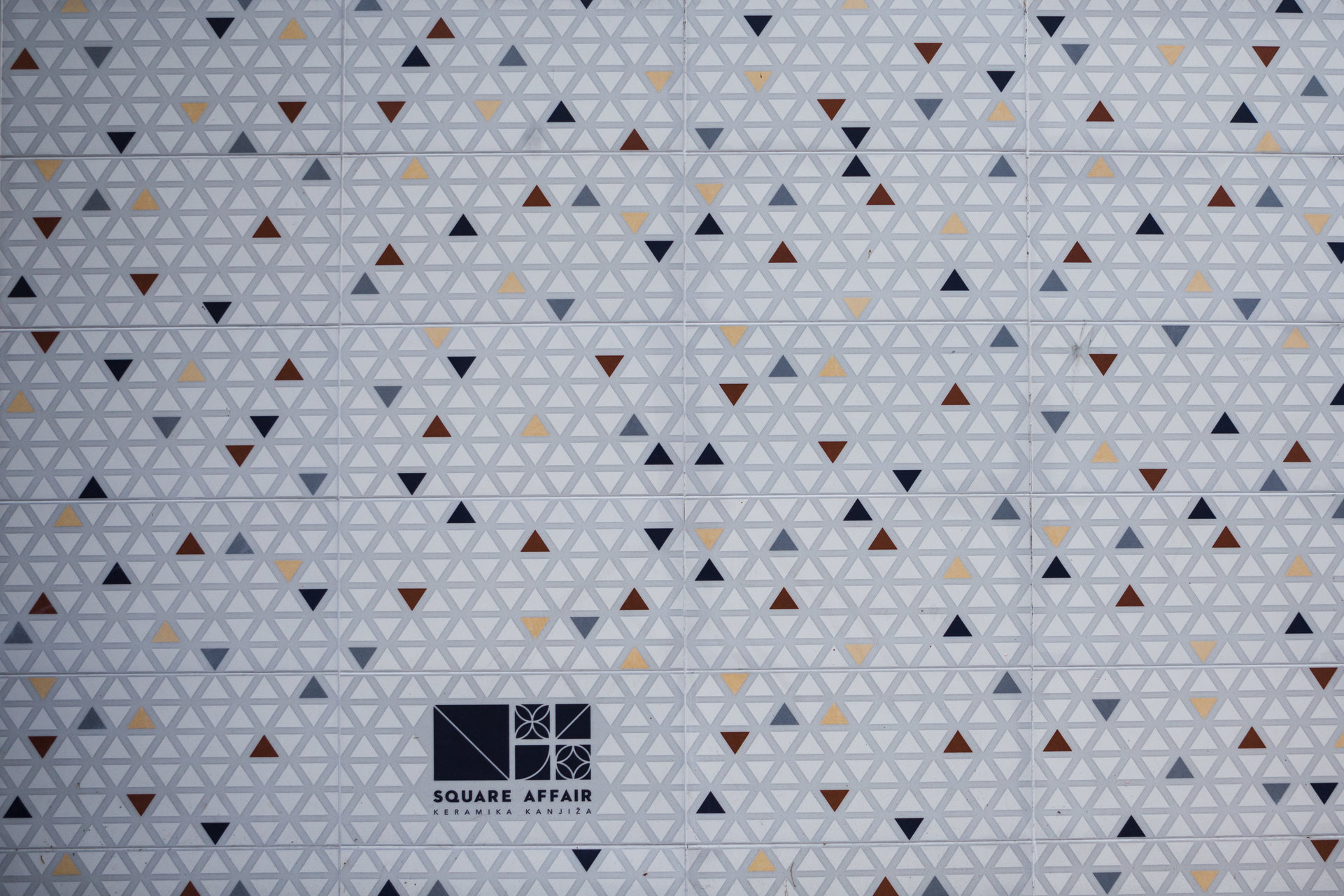 Mozaik od bež, crvenih i plavih trouglova na beloj podlozi keramičkih pločica postavljen je u maju 2018. godine na veliki zid Cvetnog trga u Beogradu. Novu gradsku umetničku minijaturu, kako ju je opisao tadašnji gradski menadžer Goran Vesić, izradila je firma Square Affair.